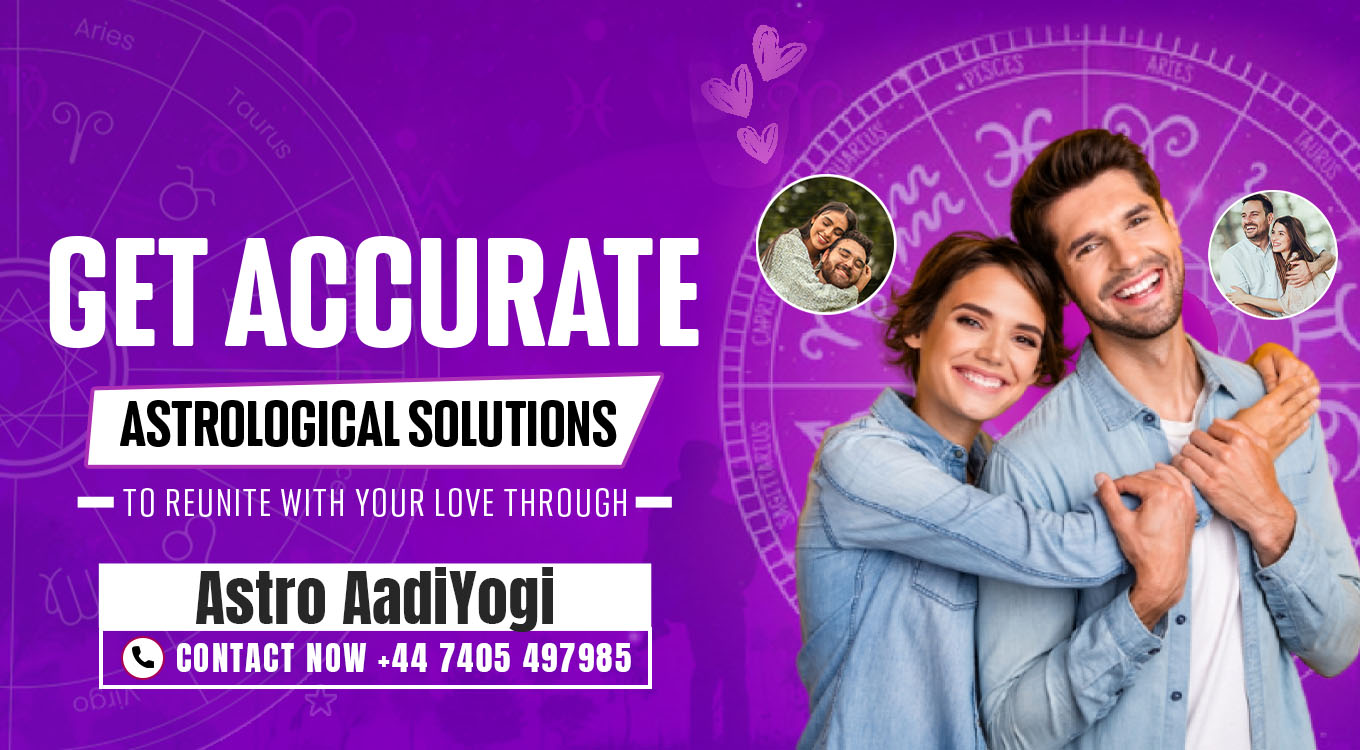 Get back your loved ones within 3days Why Choose Best Astrologer in London Astro AadiYogi is a renowned Indian astrologer based in London, boasting over 45 years of experience. He offers a guiding light through celestial insights, helping individuals decode planetary influences on their life's journey. With his profound knowledge and intuitive wisdom, he unveils hidden patterns, foretells potential challenges, and highlights opportunities. His consultations provide clarity on personal relationships, career paths, and more, empowering individuals to make informed decisions and navigate life's complexities with confidence. Trust in Astro AadiYogi to illuminate your path to a brighter future. Get Your Ex Love Back Our specialized team of experienced relationship experts and counselors offers personalized guidance and strategies to help you reconnect with your lost love. Through empathetic counseling, effective communication techniques, and tailored advice, we aim to mend broken relationships and reignite the spark that once existed. Regain the love you thought was lost and embark on a journey towards a stronger, more fulfilling partnership. Read More Call Now Black Magic Removal Our experienced practitioners employ ancient rituals, spiritual cleansing, and protective measures to restore balance and harmony in your life. With a deep understanding of the intricacies of dark energy, we work diligently to dispel malevolent influences and offer a shield against future harm. Regain control of your life and embrace positivity with our trusted Black Magic Removal Services. Your well-being is our top priority. Read More Call Now Palm Reading Unlock the secrets of your destiny with our expert palm reading services. Our seasoned palmists possess a deep understanding of the ancient art of chiromancy, offering personalized insights into your life's journey. By examining the unique lines, mounts, and shapes of your hands, we provide guidance on love, career, health, and more. Discover the hidden potential within your palms and embark on a journey of self-discovery today. Read More Call Now Psychic Reading Unlock the mysteries of your past, present, and future with our expert Psychic Reading Services. Our gifted and compassionate psychics offer personalized insights and guidance to help you navigate life's challenges, gain clarity, and make informed decisions. Through a unique blend of intuition, energy work, and divination tools, our experienced readers provide accurate and empowering readings tailored to your specific needs. Experience the transformative power of a psychic reading today. Read More Call Now Vedic Astrology Unlock the ancient wisdom of Vedic Astrology to gain profound insights into your life's journey. Our experienced Vedic astrologers employ time-honored techniques rooted in the Vedic scriptures to provide you with personalized guidance and predictions. Explore your unique planetary influences, understand karmic patterns, and receive practical advice for navigating important life decisions. Read More Call Now Job and Business Problem Astrology provides insights into career challenges. Job issues may arise due to misalignment with one's birth chart, suggesting a need for change or adaptation. Business hurdles stem from planetary influences on decision-making, highlighting the importance of strategic planning and timing. Using astrology to address job and business challenges, we analyze celestial influences for guidance and solutions. Read More Call Now Family Problem Solution Get Your Ex Love Back Negative Energy Removal Psychic Reading Spiritual Healing Health Problems Job & Business Problems Astrology & Horoscope Reading An Intro About Astro AadiYogi Astro AadiYogi is a distinguished and renowned astrologer in London with decades of experience in Vedic astrology. His profound knowledge and accurate predictions have earned him a reputation as a trusted guide in the realm of astrology. With an intuitive understanding of celestial movements and planetary influences, he offers insightful readings that cover various aspects of life, including relationships, career, health, and finance. Astro AadiYogi's expertise lies in deciphering complex birth charts and providing personalized remedies to alleviate challenges and enhance positive energies. His compassionate and client-centric approach creates a comfortable environment for seekers to share their concerns. Through his profound insights and guidance, Astro AadiYogi continues to bring clarity, direction, and hope to countless individuals, helping them navigate life's journey with wisdom and confidence. Seek Effective & Quick Solutions Call At:+44 7424 129236 45+ Years Of Experience Benefit from over 45 years of seasoned expertise. Our extensive experience ensures precise insights and reliable guidance tailored to your life’s unique needs. Trust in our ability to offer informed solutions across various life aspects. Life Time Protection Experience a lasting shield of protection with Astro AadiYogi’s remedies. Designed to safeguard against adversities, these solutions promote harmony and well-being throughout your life. 365 Days Availability Enjoy the convenience of round-the-clock accessibility. Our services are available 365 days a year, providing you with guidance whenever you need it and fostering a robust support system. 100% Guaranteed Results Rest easy knowing that Astro AadiYogi’s solutions come with a 100% satisfaction guarantee. His proven track record ensures that the outcomes align with your aspirations and desires. Astro AadiYogi Trustable Astro AadiYogi's guidance has been instrumental in my life. His accurate predictions and profound insights have empowered me to face life's challenges with confidence. His empathetic approach creates a comfortable space for discussing concerns, and his remedies have brought about significant positive changes. With his vast experience and genuine care, I highly recommend Astro AadiYogi to any
